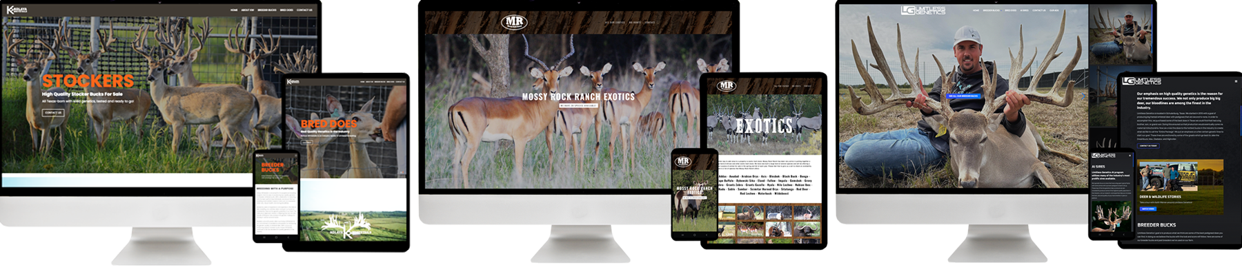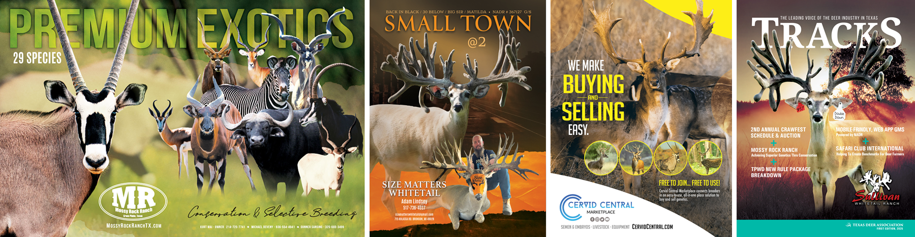 Hopkins Design has been specializing in Wildlife Ranch Marketing services for more than 15 years. These services include custom website design/development, site management, SEO, photography, video editing/production, email marketing, online advertising, logo design/branding, magazine advertising, tradeshow banners and materials, brochures, flyers, business cards, and more. HD has extensive experience providing custom magazine ads to many publications such as Texas Deer Association, Whitetail Sales, NADeFA, TX & Northern Top 30, EWA, TX Trophy Hunters and more.